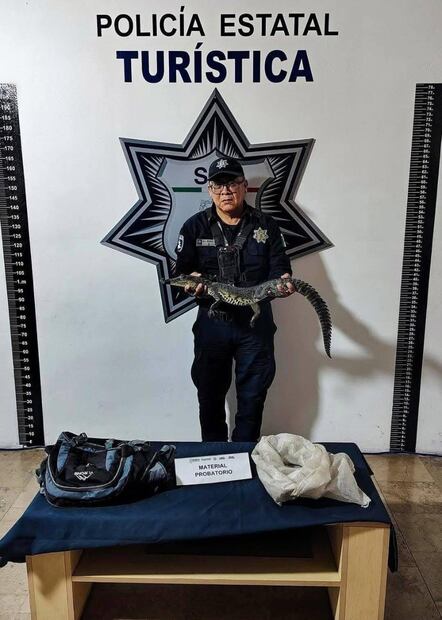 El lagarto mide 1 metro de largo y es de pantano, una especie legalmente protegida en México.